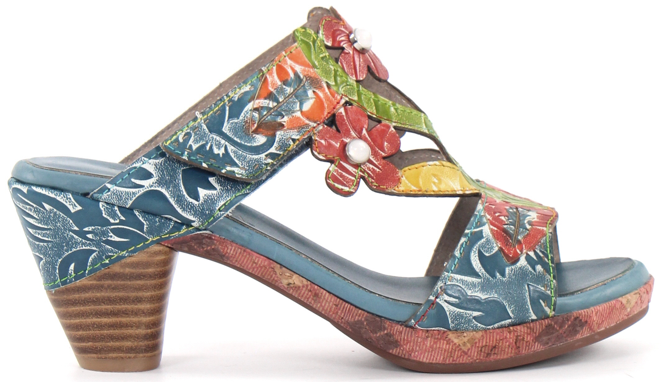 Vackra slip-ins i äkta läder med dekorativa blommor.