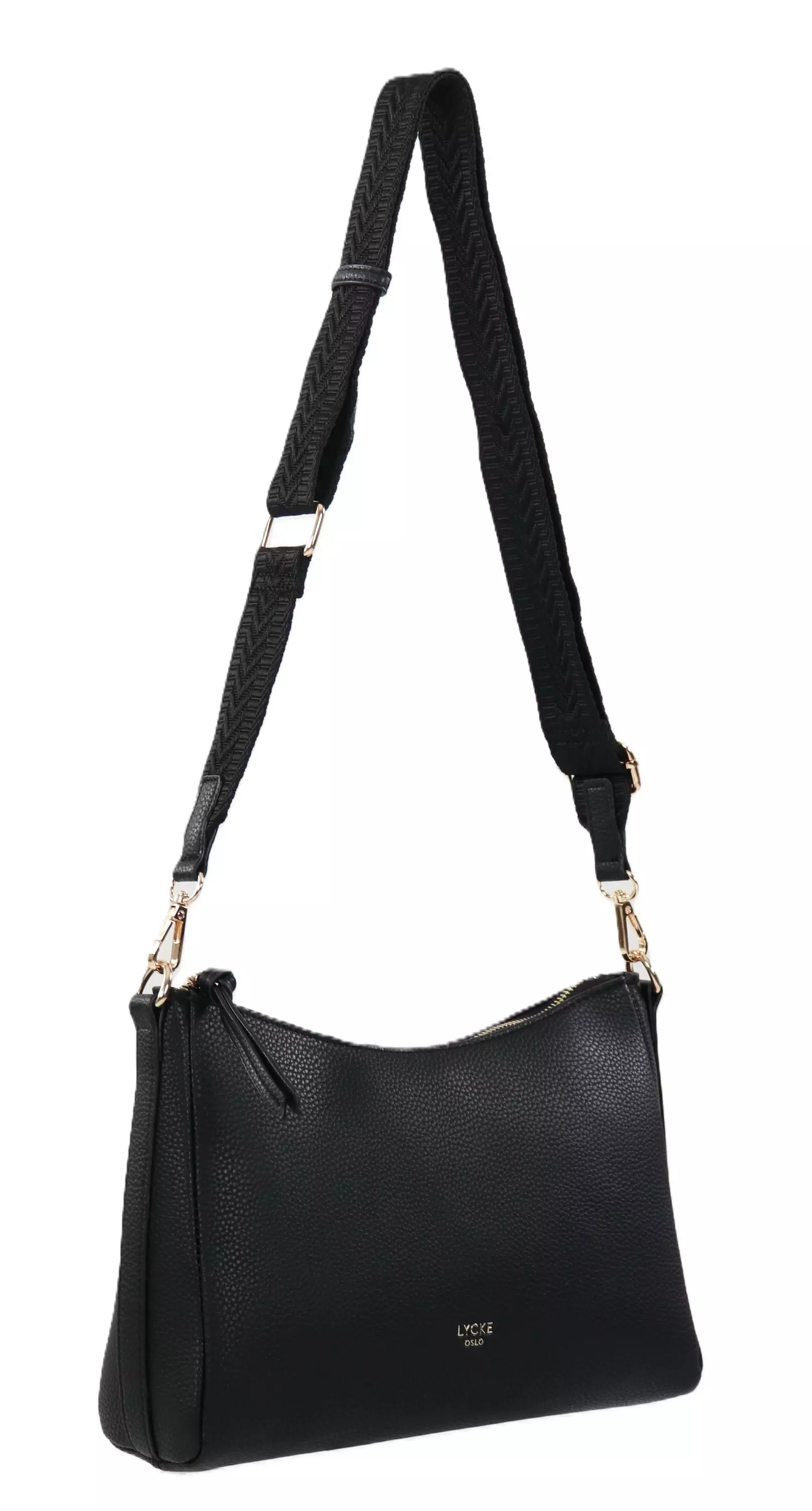 Denna svarta Lycke-axelväska kombinerar praktiskhet och snygg design! Väskan har ett kortare bärhandtag och en bred, bekväm textilrem, vilket ger en avslappnad trendig look.