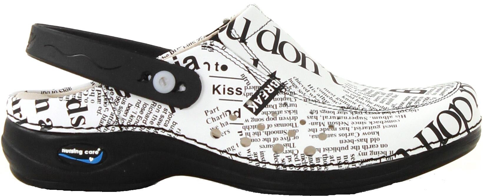 Arbetsskor har justerbar bakrem. Klackhöjden ca 3 cm.