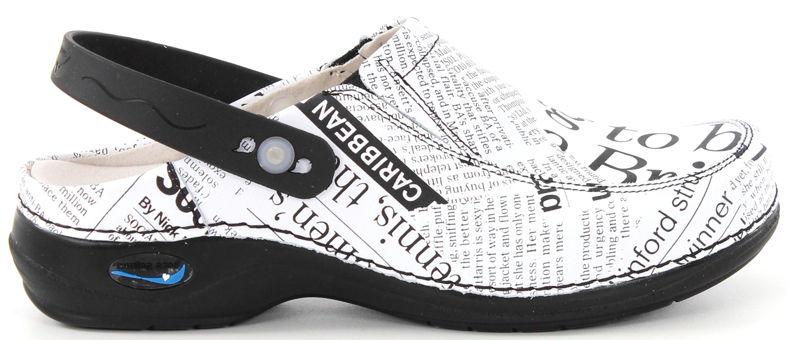 Arbetsskorna har justerbar bakrem. Klackhöjden ca 3 cm.