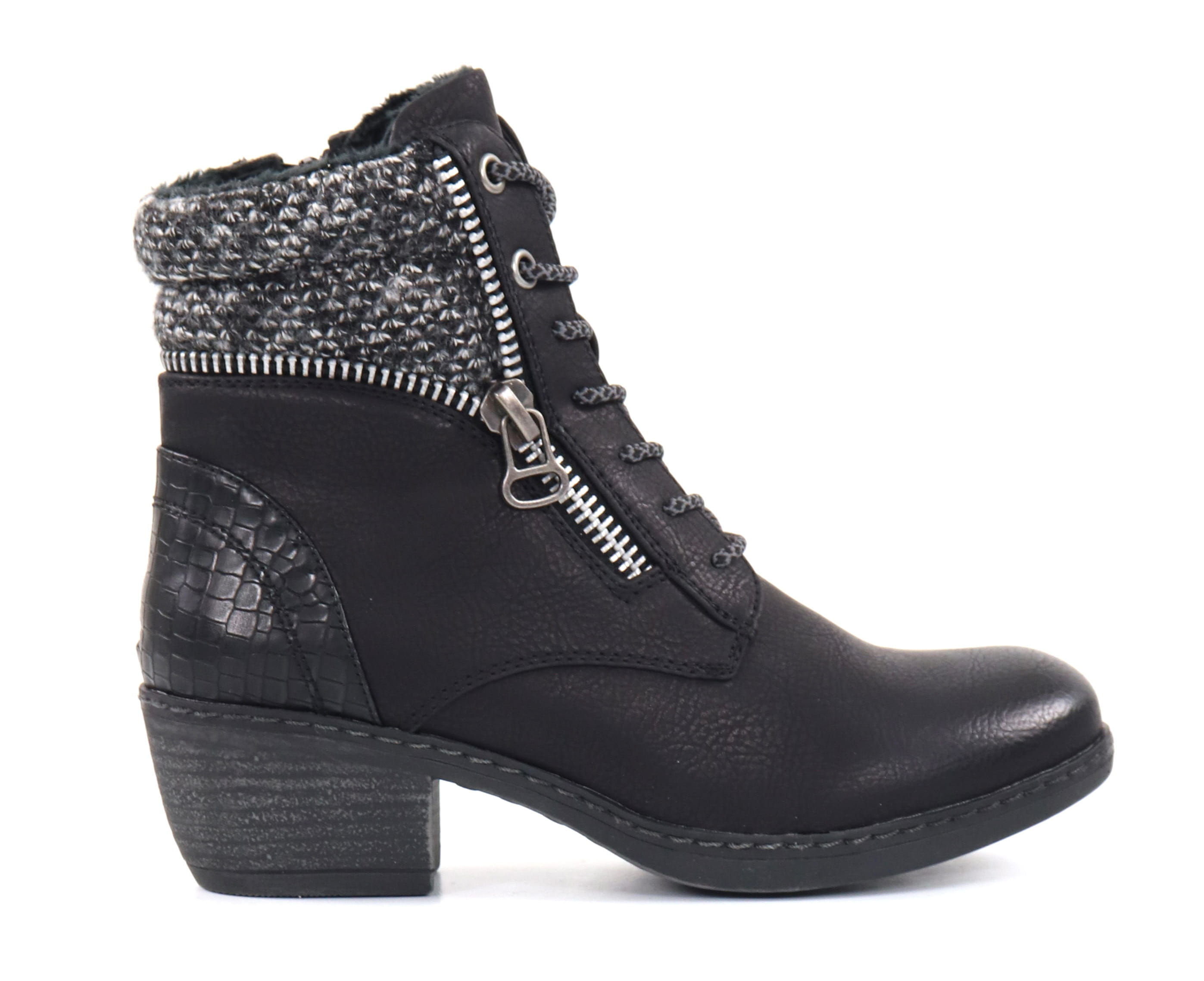 Stövletter med tunt textilfoder. Dragkedja på insidan och snörning framtill.