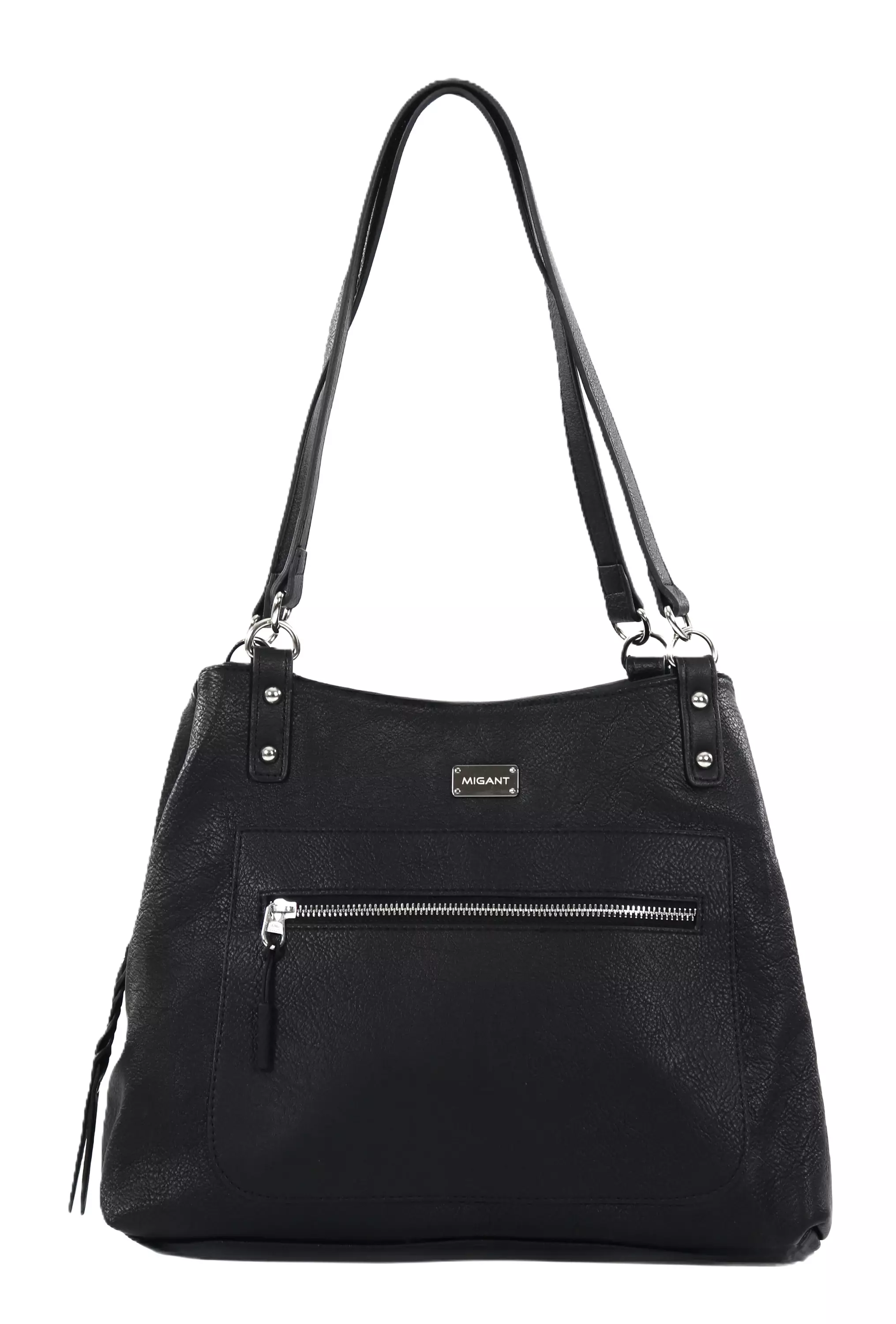 Migants svarta axelväska erbjuder praktisk och stilfull vardagsupplevelse. Flera fickor med dragkedja håller saker organiserade och lättillgängliga.