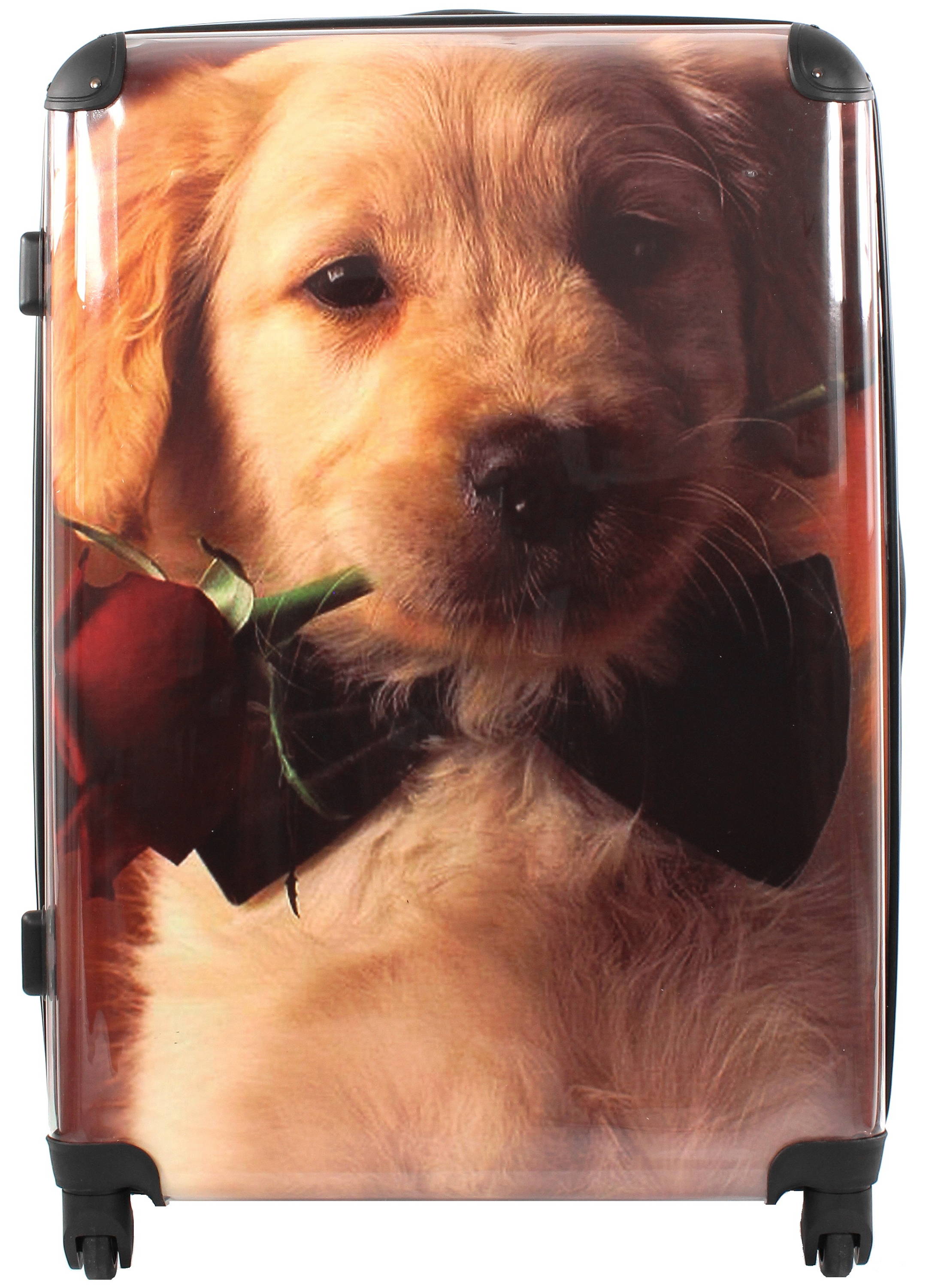 Stor resväska med bild på en hundvalp. Bilden på framsidan kan bytas.