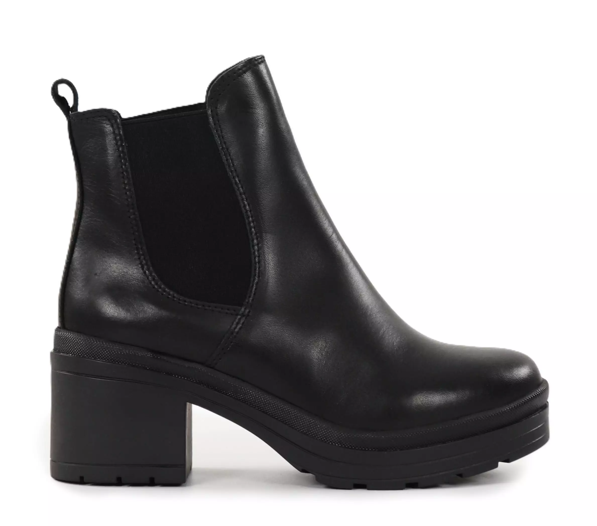 Svarta stövletter med robust platåklack, klassisk design och stretch på sidorna för enkel påklädning. Äkta läder ger kvalitet och hållbarhet. Ett mångsidigt val för vardagsbruk eller för snyggare klädsel!
