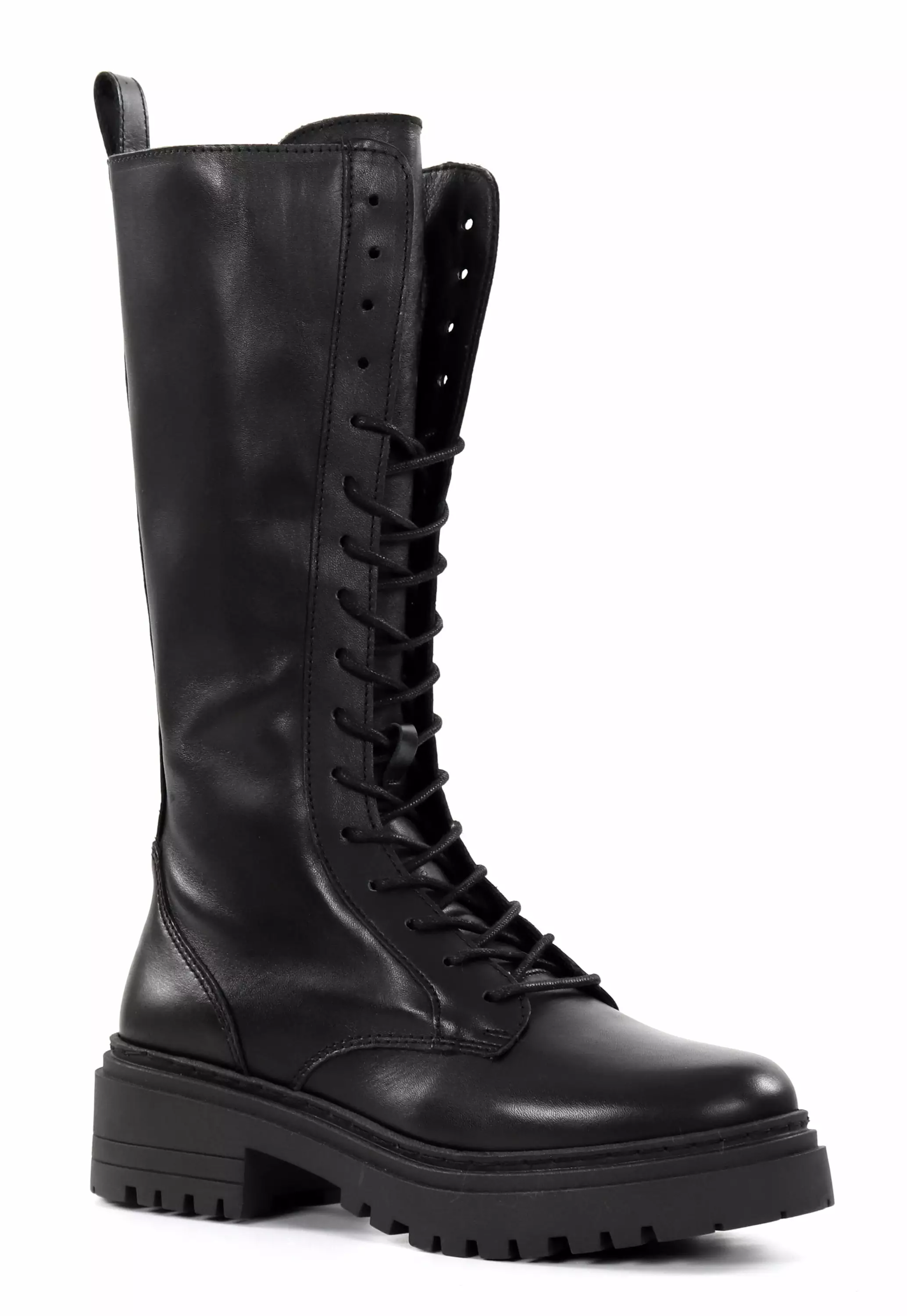 Trendiga tjocksulade läderstövlar med snörning.