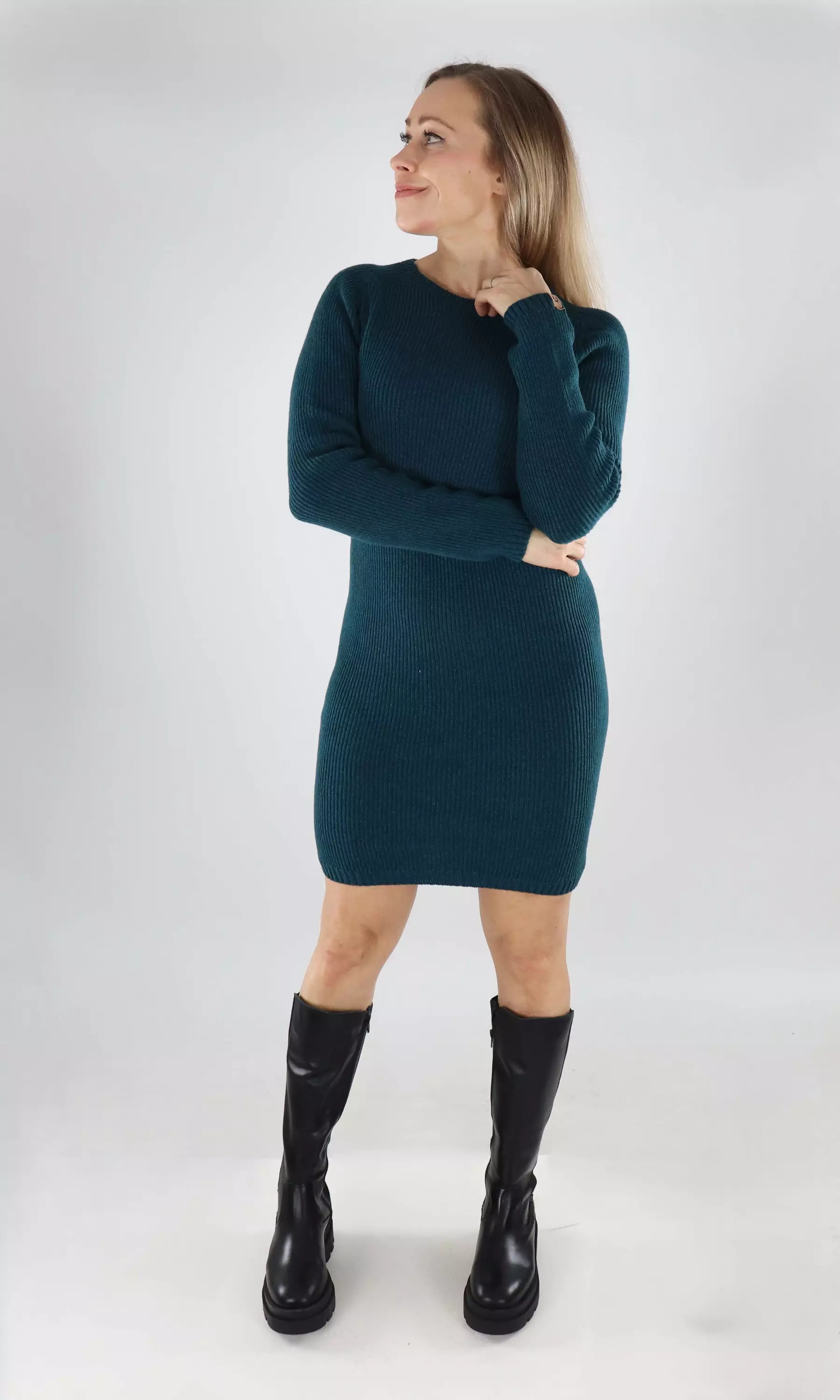 - Ribbstickningen är flexibel och tät, vilket gör klänningen bekväm att bära, men den håller sig också upprätt