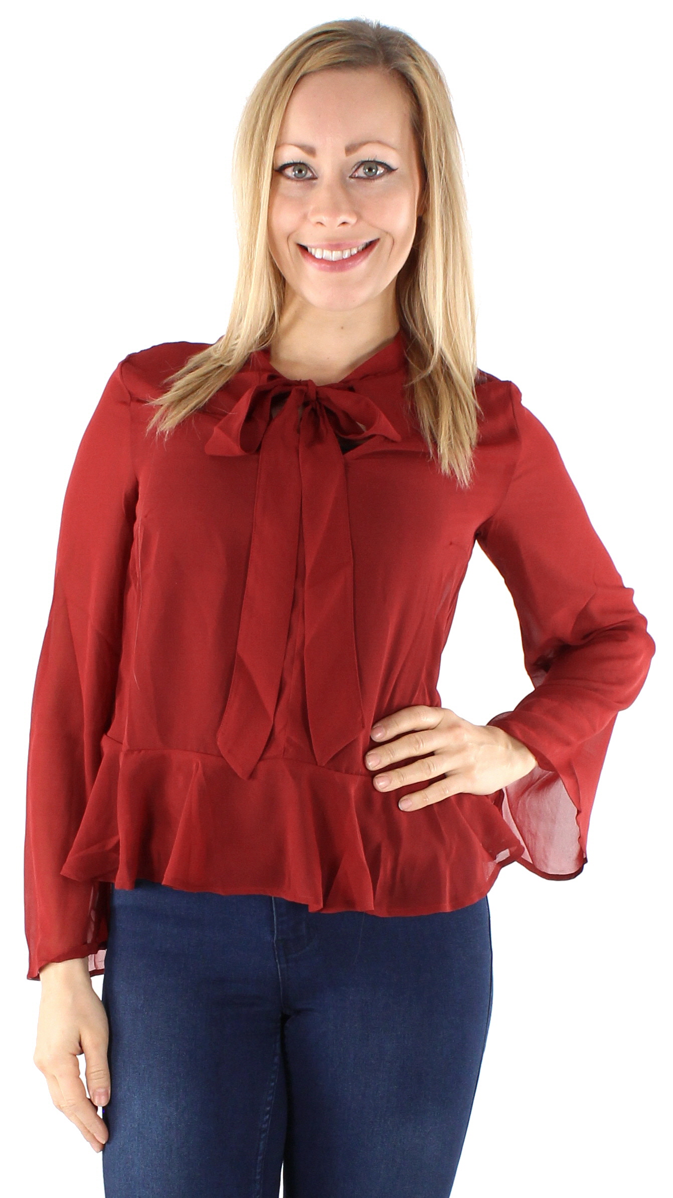 Genomskinlig blus med lösa ärmar och snygg krage med rosett.