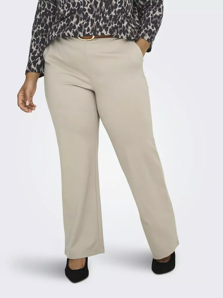 Bekväma och snygga beige byxor i plus size för vardags- och festbruk! Det stretchiga materialet garanterar en bra passform och rörelsefrihet hela dagen. Den tidlösa beige nyansen är lätt att kombinera med olika toppar och accessoarer.