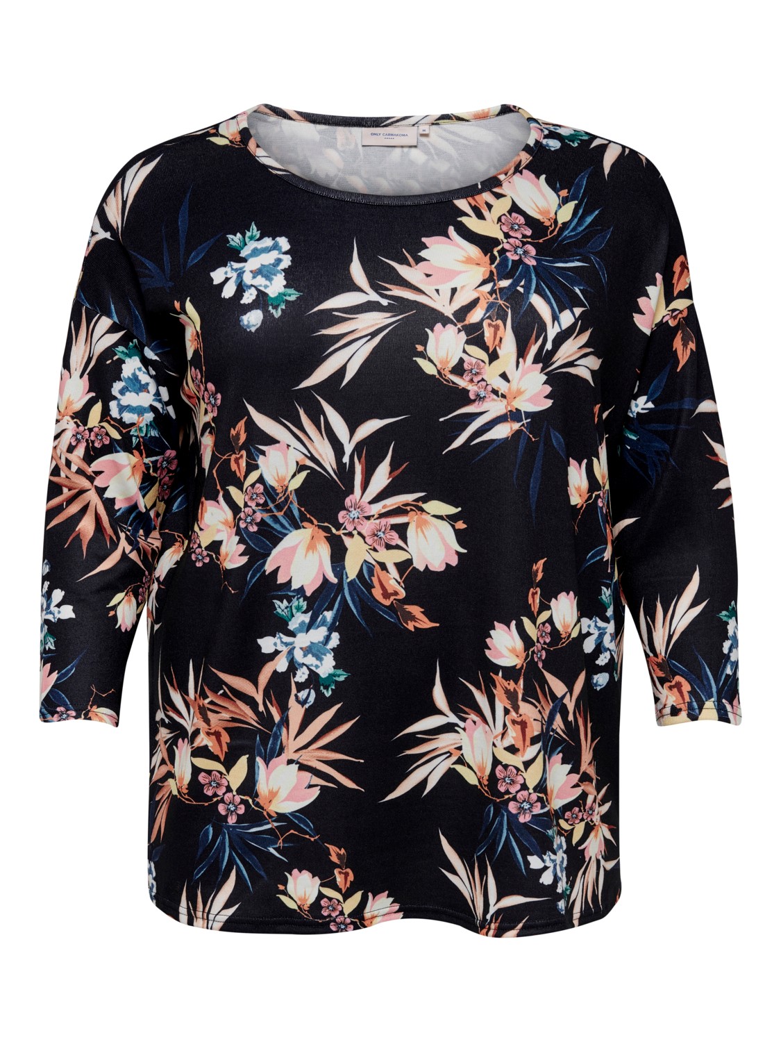 Only Carmakoma Stickad tröja Alba svart/flowers
