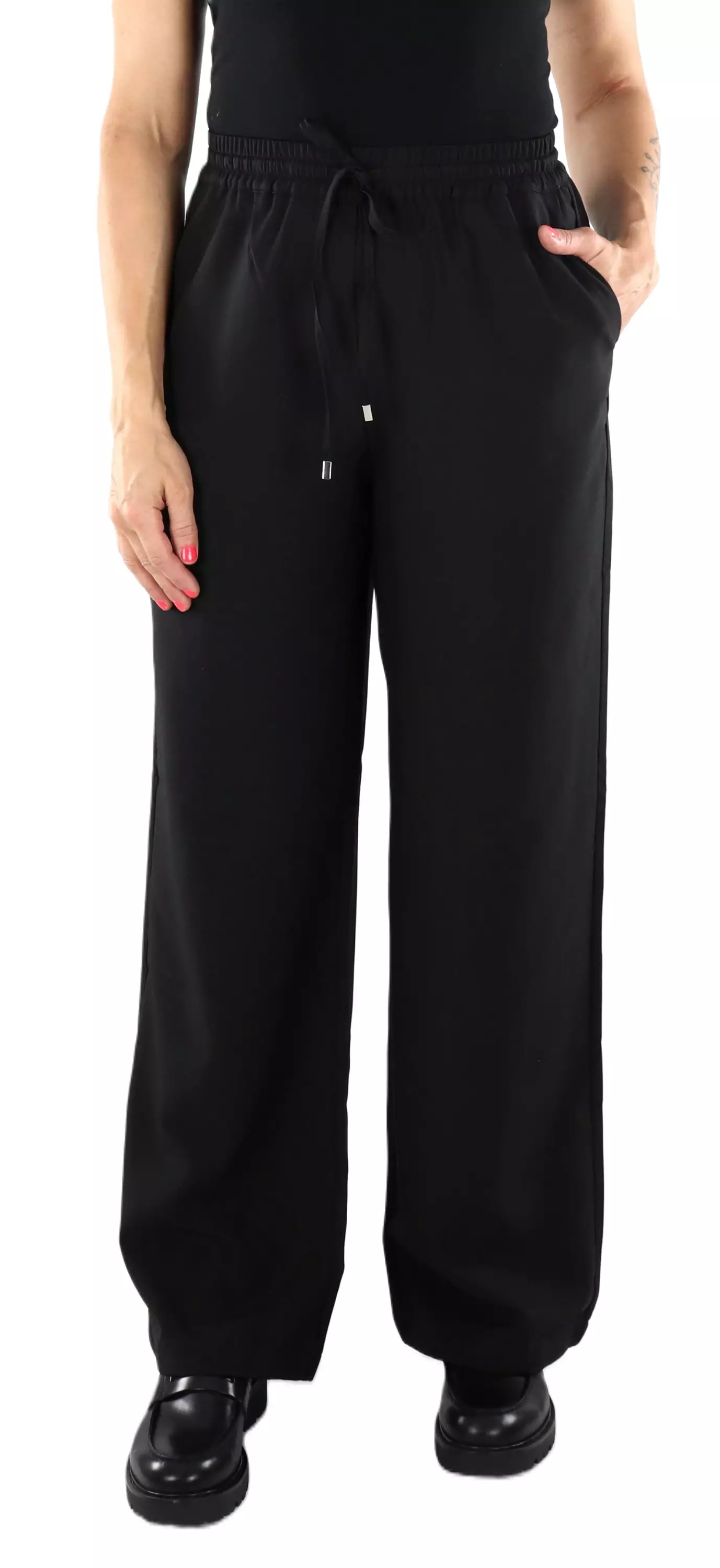 Byxor med vida ben av stretchigt material. Byxorna passar lika bra till vardags som till festligare tillfällen.