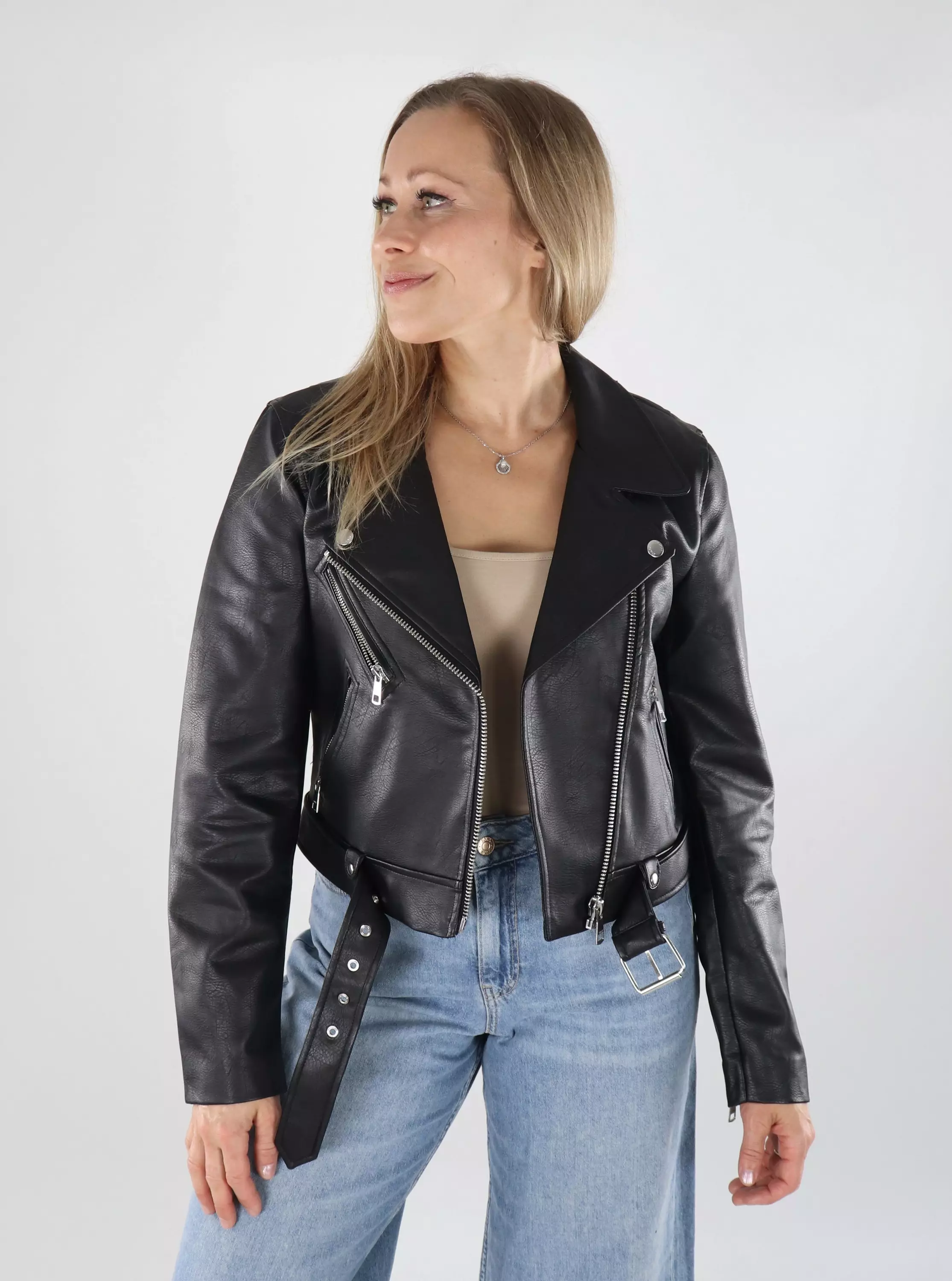 Only damjacka i konstläder Biker svart