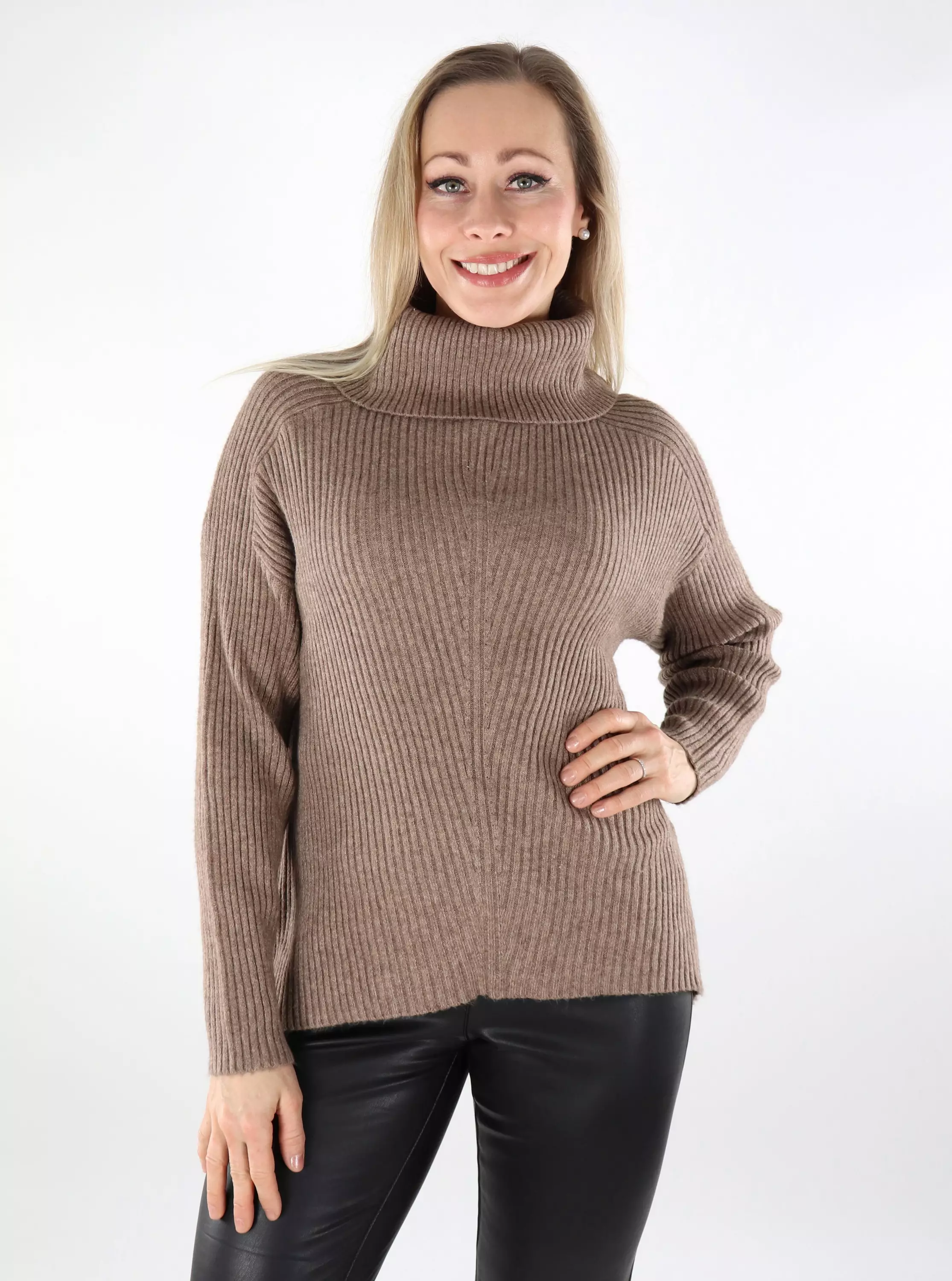 Mjuk tröja med hög urringning. Lite längre fåll på baksidan.
