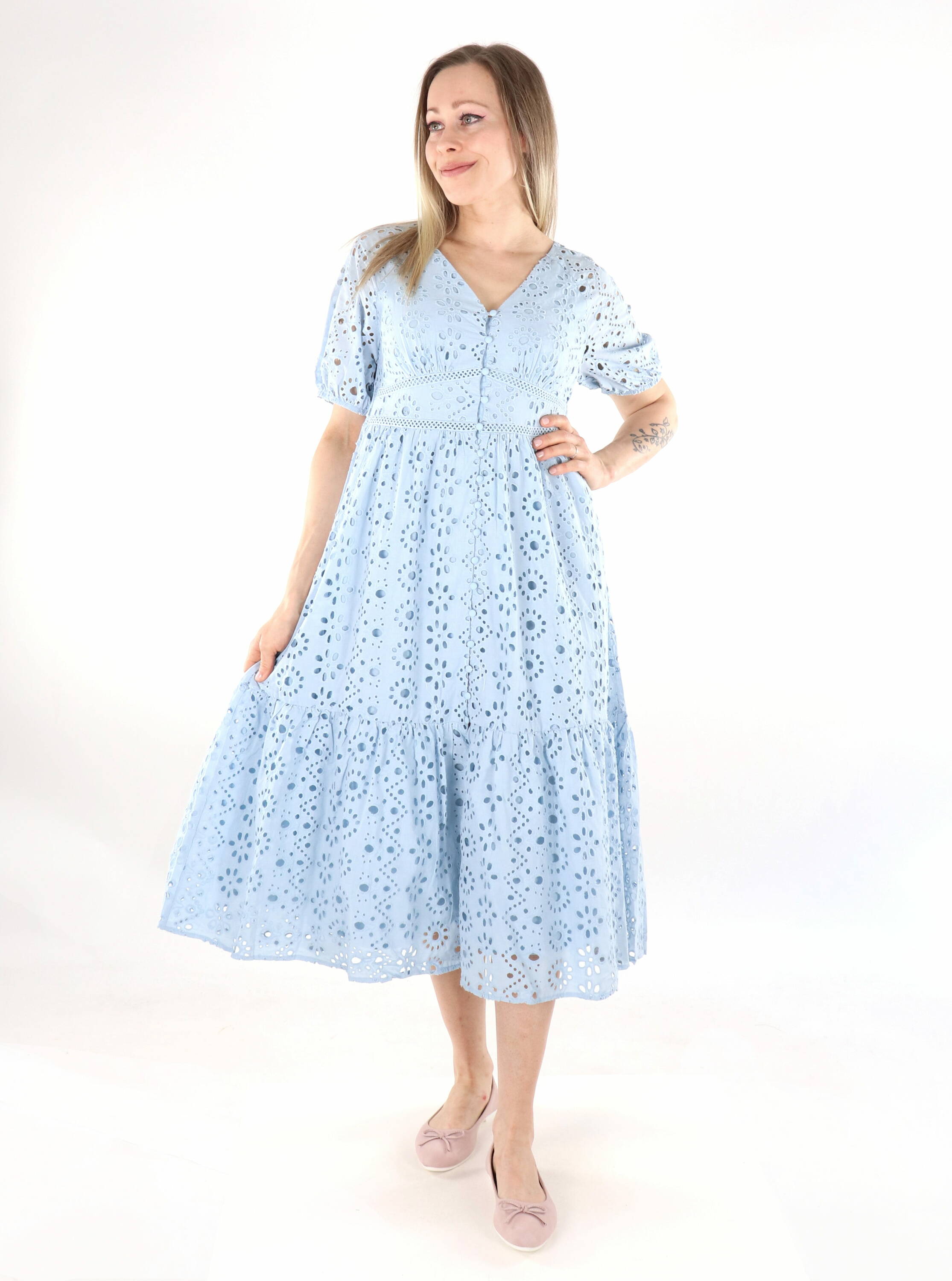 Vacker fodrad och spetsmönstrad klänning med snygg A-fåll.