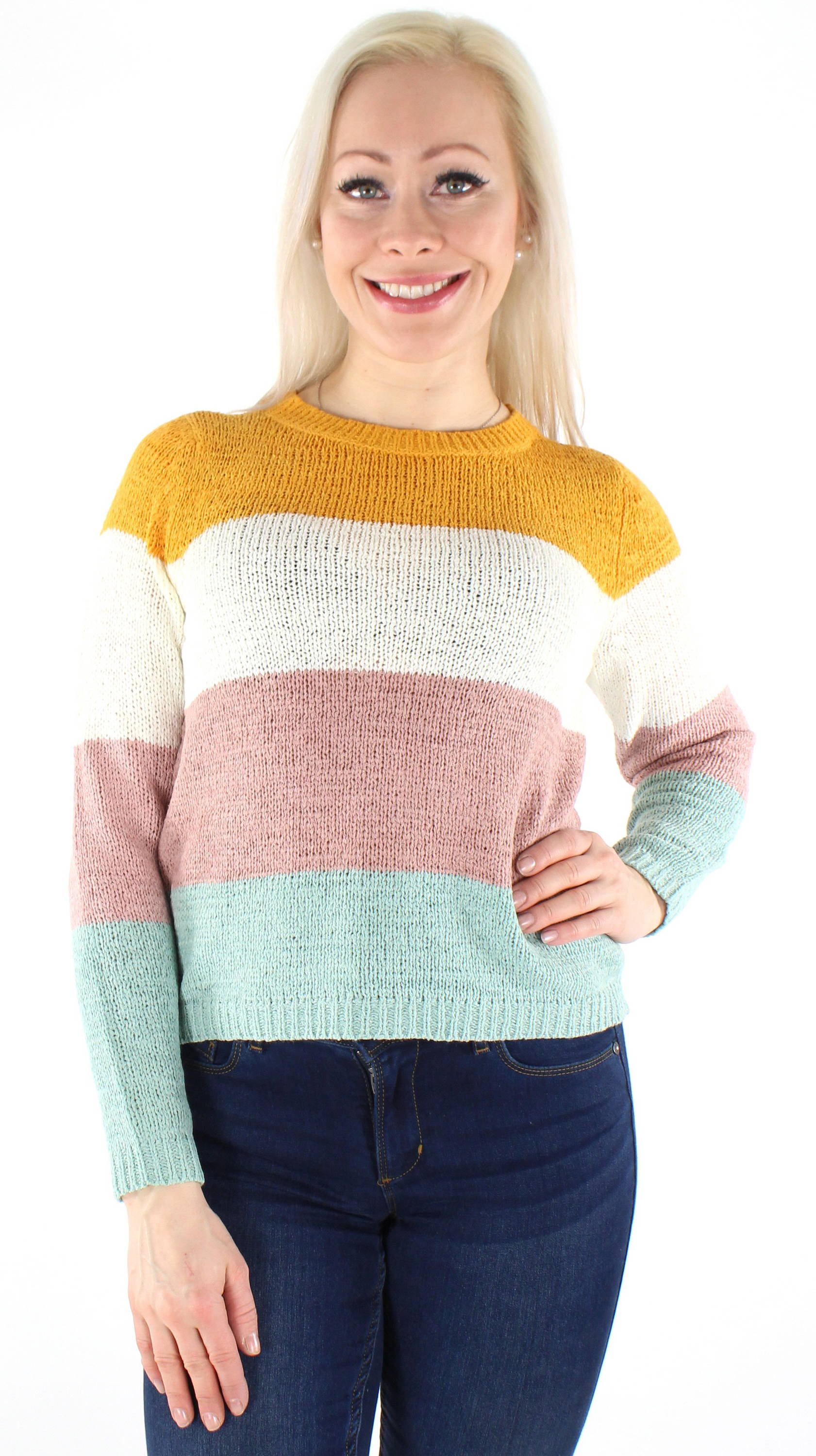Stickad tröja med ränder i härliga färger
