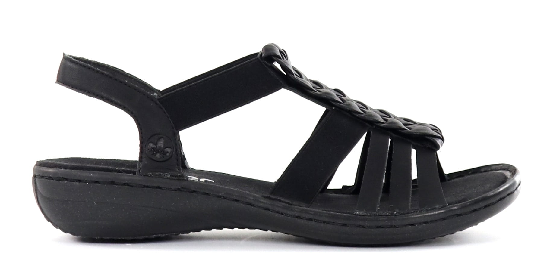 Riekers vackra och praktiska sandaler för sommaren. Tack vare de stretchiga banden är sandalen enkel och snabb att ta på!