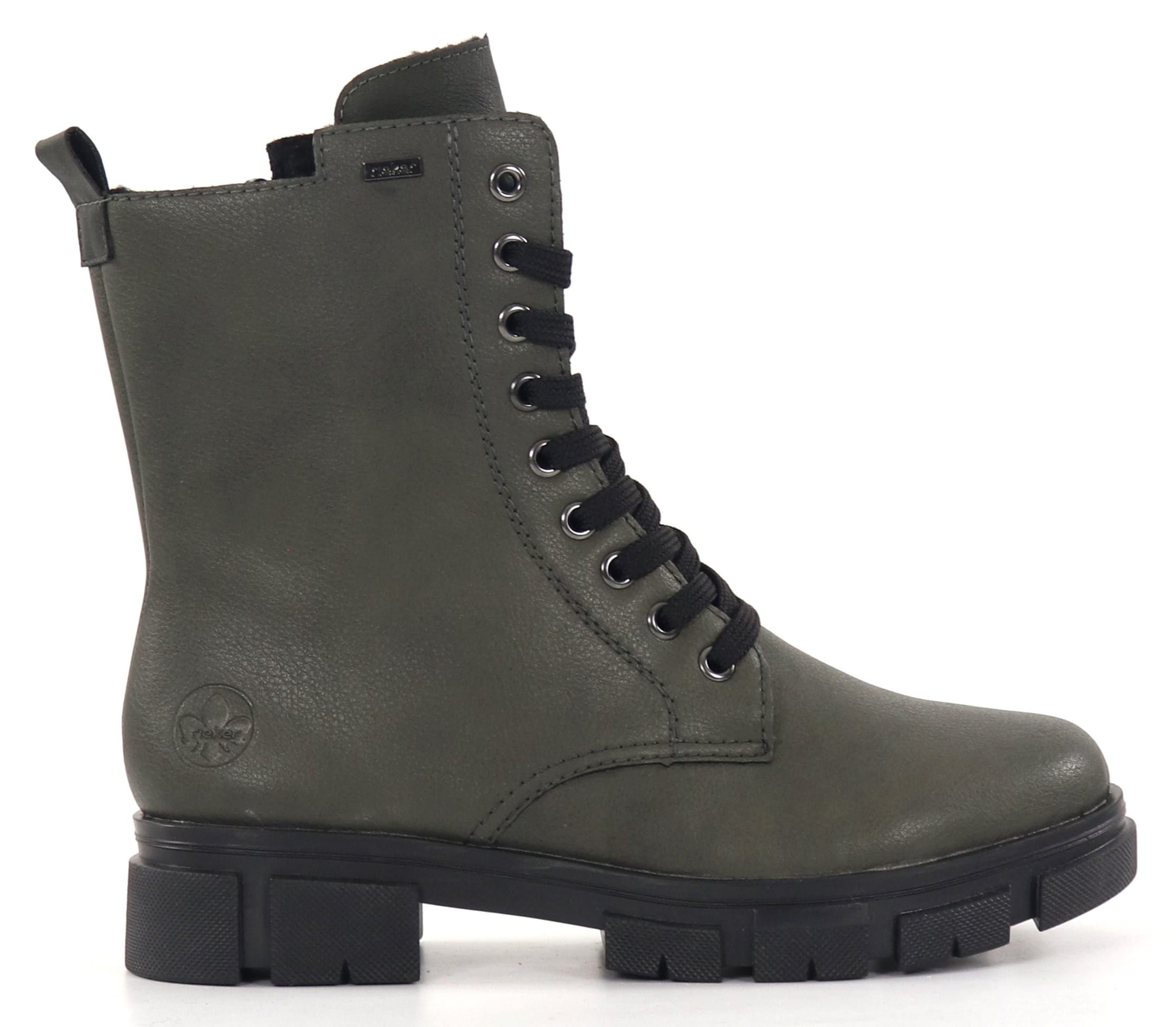 En trendig och mångsidig stridsstövelmodell med en robust sula. Läder. Dragkedjan gör den lättare att ta på och banden ökar passformen.