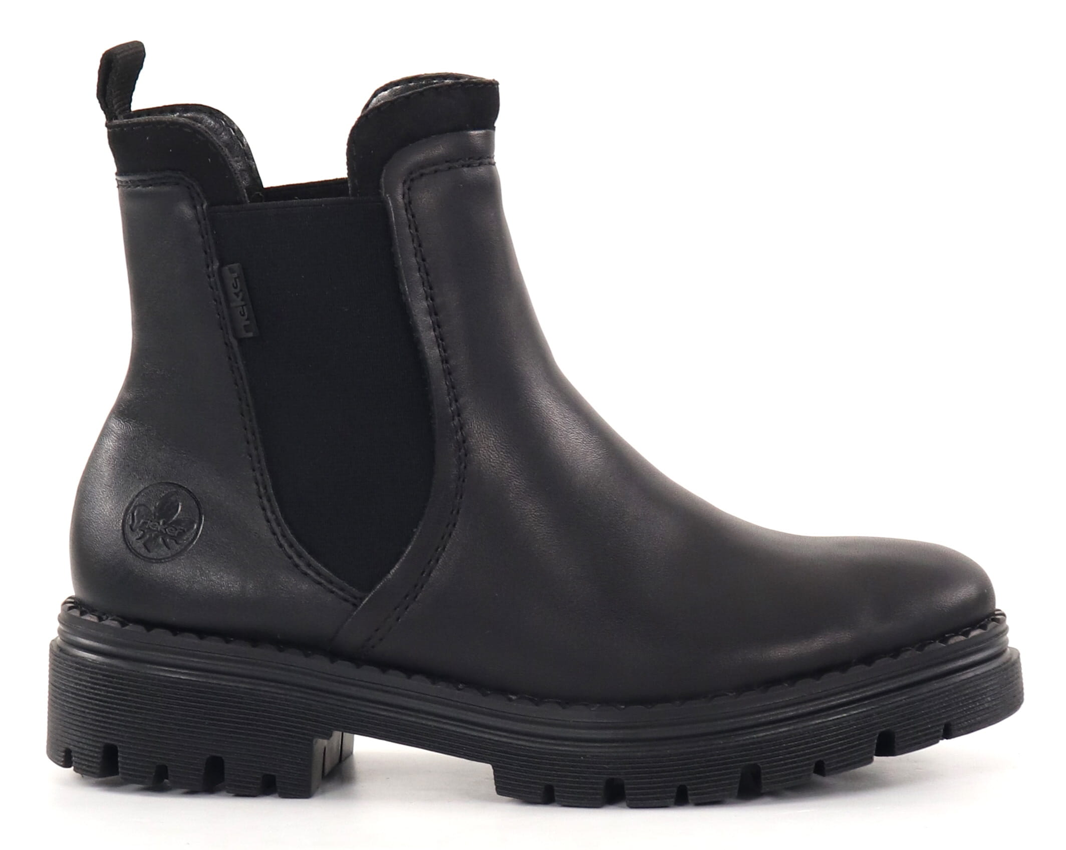 Rieker ankelstövlar i läder med elastiska kilar. Varmt teddyfoder.