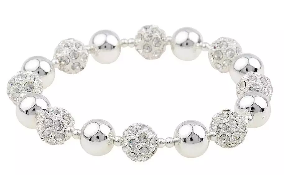 Armband med silver- och ädelstenspärlor, elastiskt gummiband