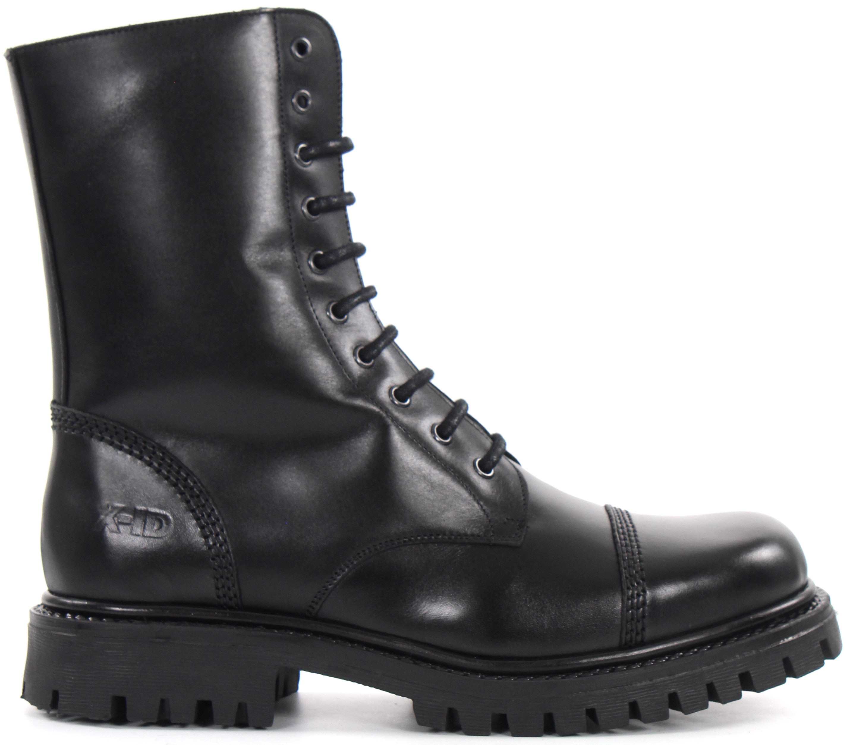 Snörstövletter med lång skafhöjd i äkta läder.