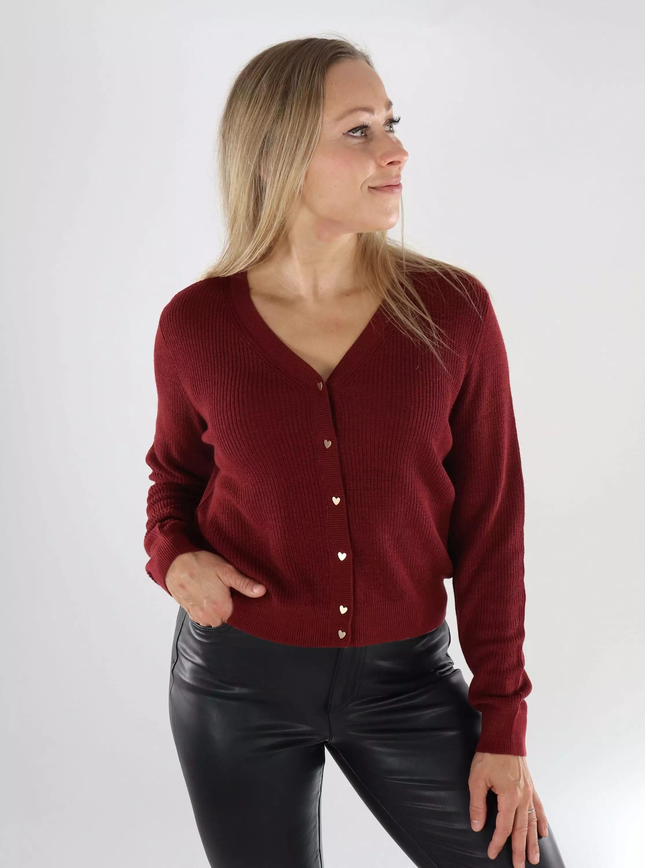 En lätt och luftig kofta med gyllene hjärtknappar som ger en lekfull och trendig twist till looken. Perfekt att kombinera med jeans eller en klänning!