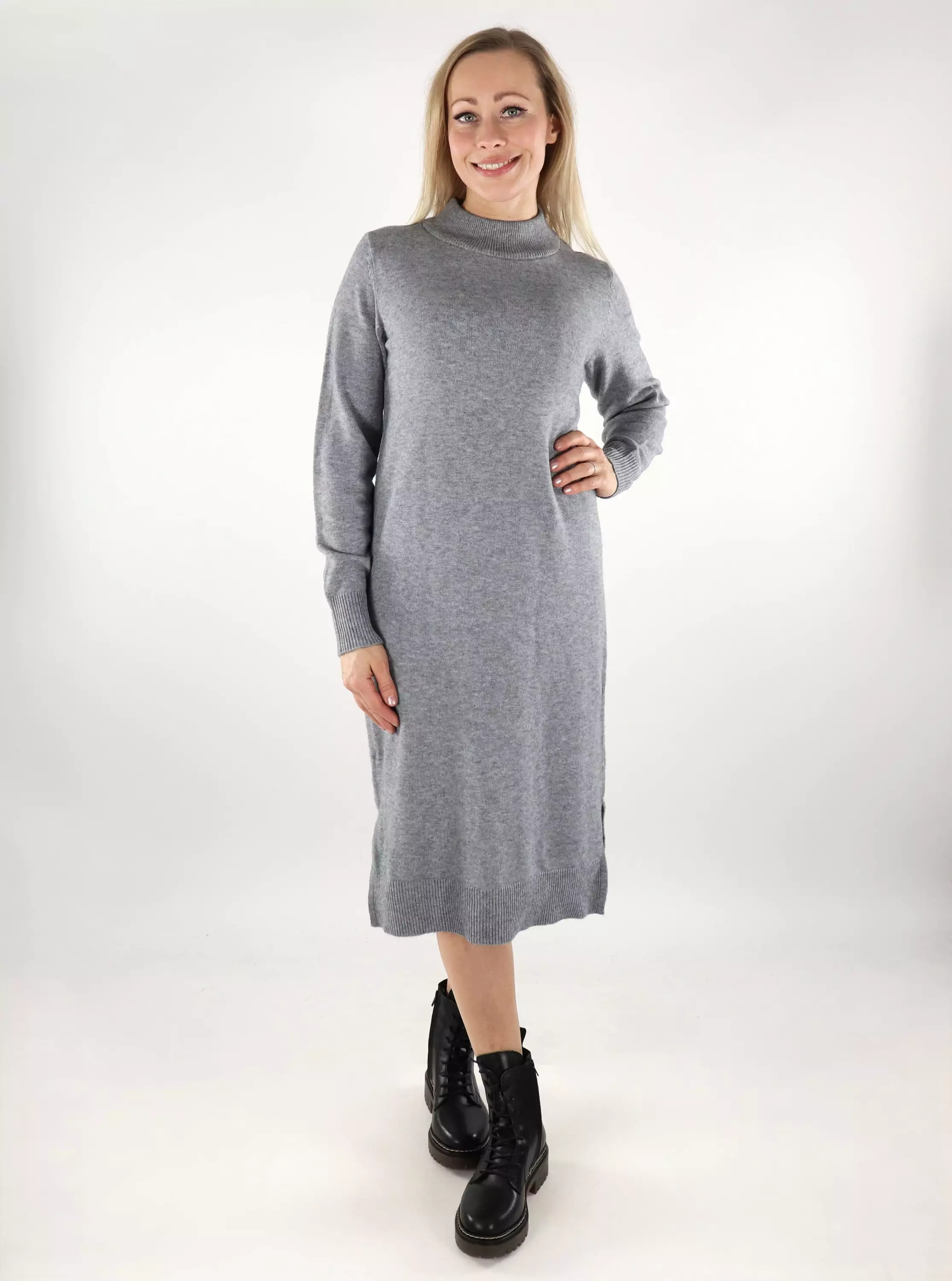 Vila midi-lång stickad klänning Ril Crew Neck mellangrå